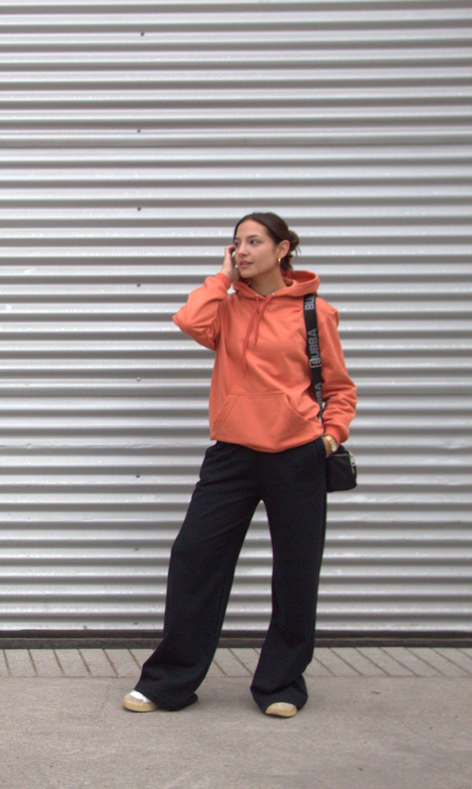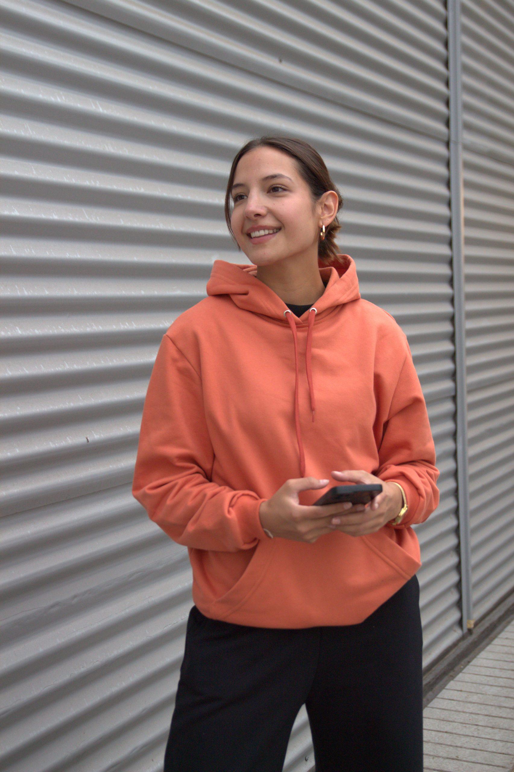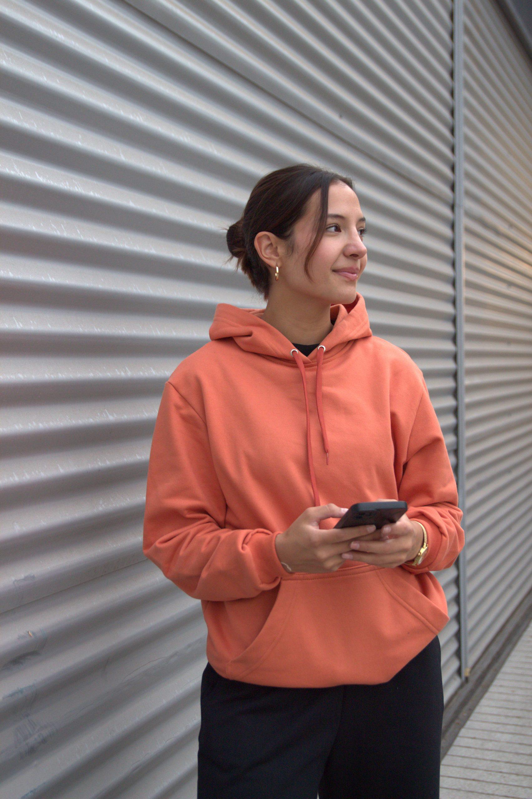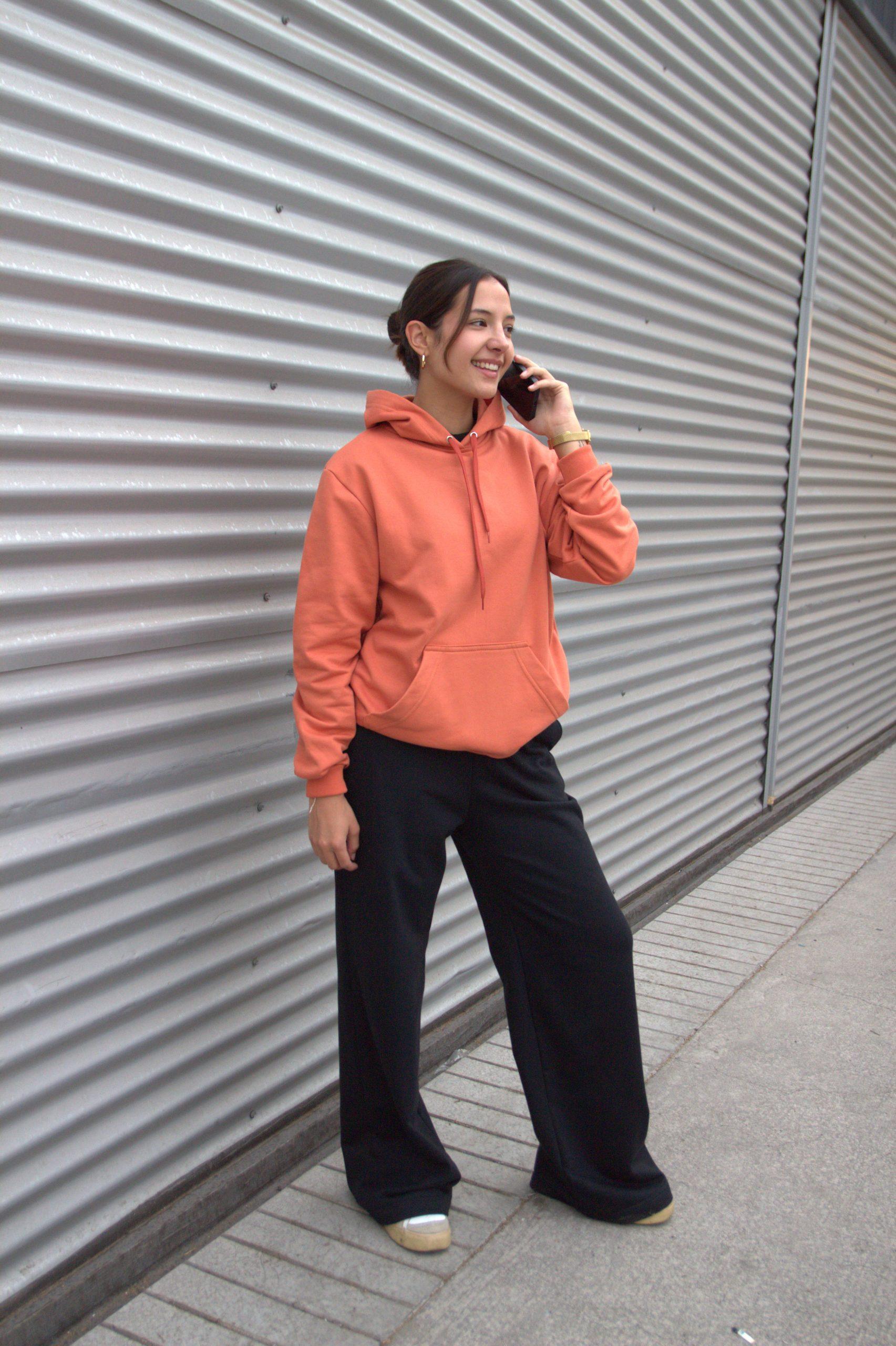 Polerón con bolsillo tipo canguro y gorro.